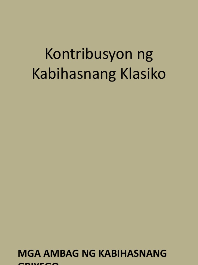 Kabihasnang Klasiko MGA AMBAG NG KABIHASNANG GRIYEGO Marami ang mga naging ambag ng kabihasnang Griyego sa ibat-ibang larangan tulad ng. Talakayan 2 Mga Kontribusyon ng Klasikong Kabihasnan sa Africa. Ano ang ambag ng mesopotamia.