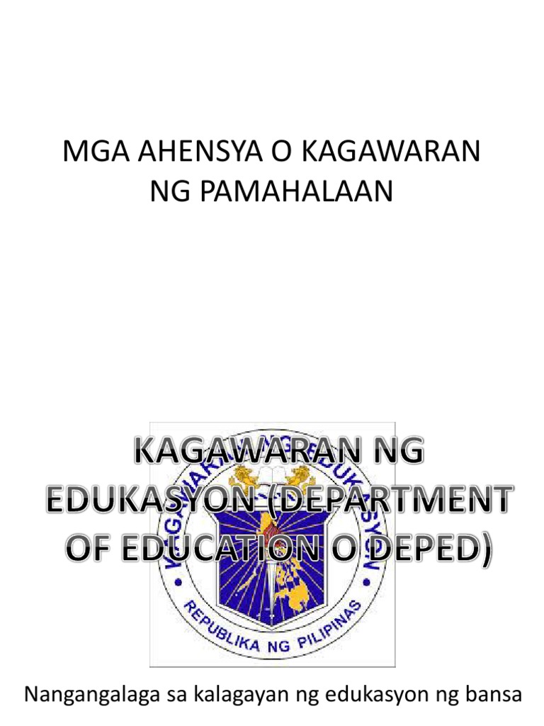 Sa Russia pag-aari ng pamahalaan. Mga Kahalagahan ng Pamahalaan Ipinasa ni. Kagawaran ng Edukasyon Department of Education o DepEd Ang Dep Ed ay ahensya ng pamahalaang naatasang mangalaga sa kalagayan ng edukasyon ng bansa.