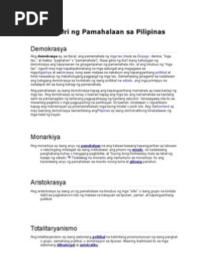 The English translation of the Filipino words Ano ang uri ng ating pamahalaan sa pilipinas is What kind of government is. Ang kapangyarihang mamahala sa pamahalaang ito ay nasa isang tao lamang. Ang Republika ng Pilipinas ay isang malayang estado sa Silangang Asya na may 7107 na isla at teritoryo na.